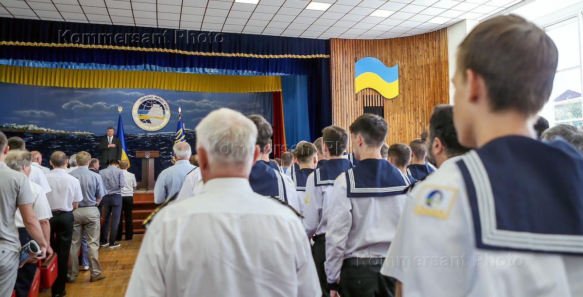 Рабочая поездка президента Украины Петра Порошенко в Одессу. Президент Украины Петр Порошенко во время посещения Одесской национальной морской академии, которой он присвоил статус Национального университета.