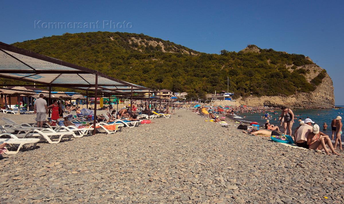 Виды Краснодарского края. Пляж на озере в поселке Абрау Дюрсо.
