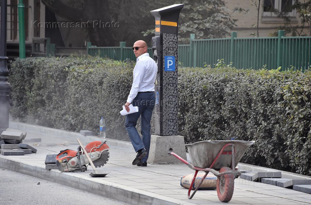 Жанровая фотография. Укладка тротуарной плитки на одной из улиц Москвы.