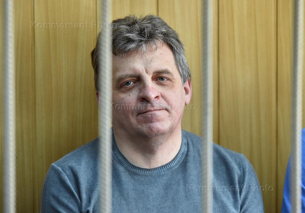 Бывший временно исполняющий обязанности начальника хозяйственного управления министерства обороны России Николай Рябых, обвиняемый по делу о мошенничестве в особо крупном размере в подведомственной Министерству обороны России компании "Славянка" во время заседания по рассмотрению по существу уголовного дела в Тверском районном суде.