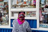 Жанровая фотография. Городской рынок. Старушка в платке у торгового киоска.