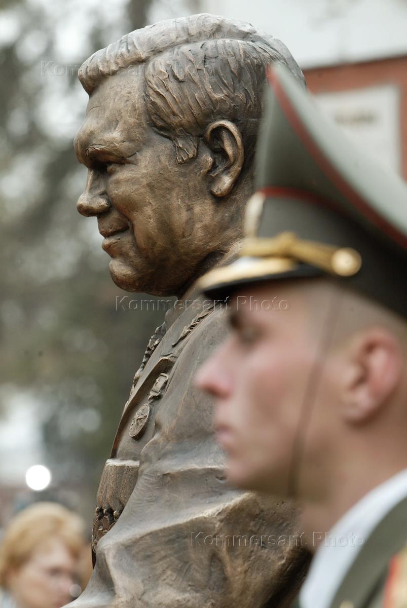 The opening ceremony of the bronze monument to general Alexander Lebed who tragically died a year ago was held in the Novodevichie cemetry. The monument was made by famous sculptor Salavat Scherbakov.