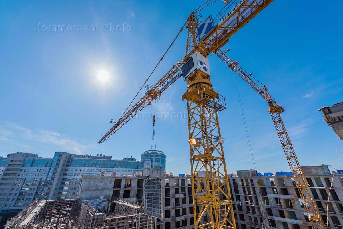 Рабочие на стройке жилого комплекса на Пискаревском.