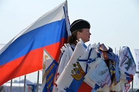 Международный авиационно-космический салона "МАКС-2015". Продажа флагов, флажков с российской символикой.