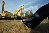 Международный авиационно-космический салона "МАКС-2015". Жанровая фотография. Посетитель салона отдыхает на траве.