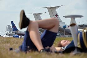 Международный авиационно-космический салона "МАКС-2015". Посетители отдыхают на поле салона.