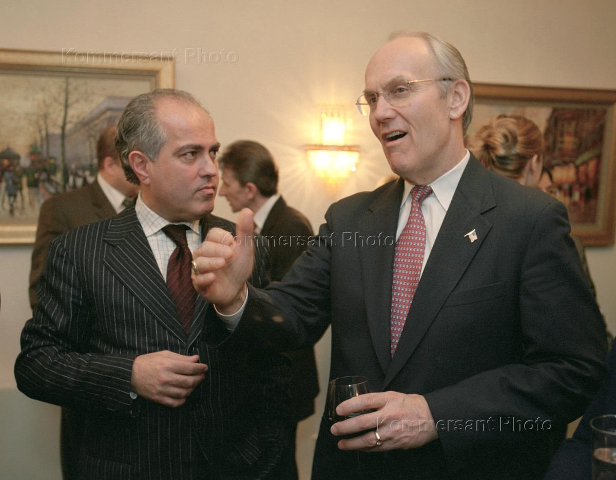 Исполнительный вице-президент Московского международного нефтяного клуба Тогрул Багиров (слева) и сенатор США Ларри Эдвин Крейд (справа) на Приеме от Московского нефтяного клуба в Гостином дворе.