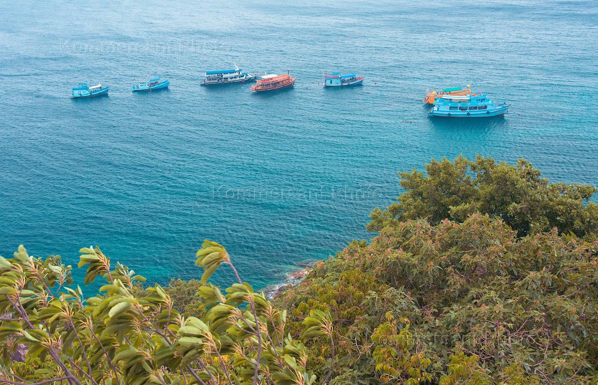 Туристические прогулочные катера у берега острова Ко Нанг Юань (Koh Nang Yuan).