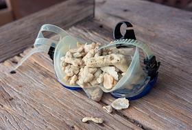 Жанровая фотография. Ракушки и кораллы в очках для подводного плавания.