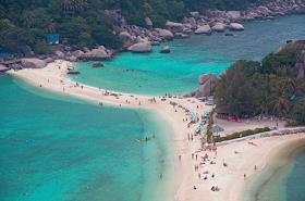 Виды острова Ко Нанг Юань (Koh Nang Yuan). Отдыхающие на пляже.