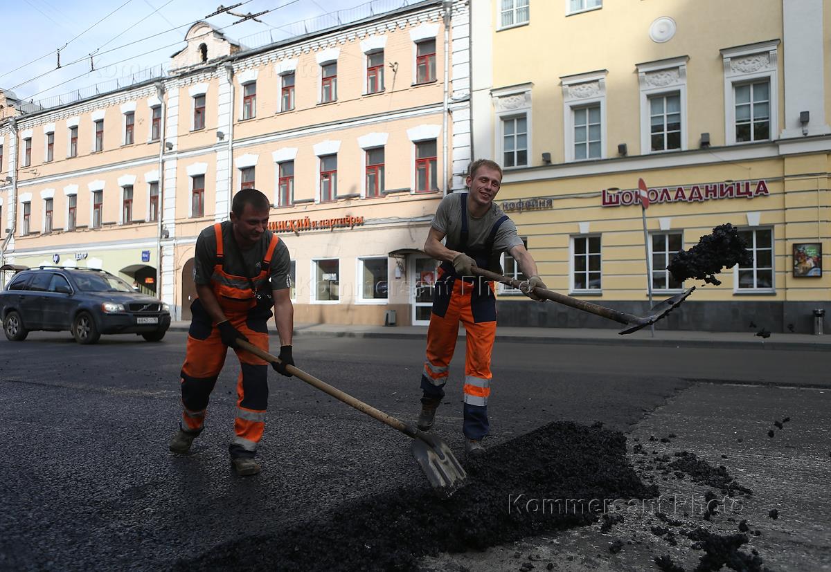 Жанровая фотография. Укладка асфальта у станции метро "Добрынинская".