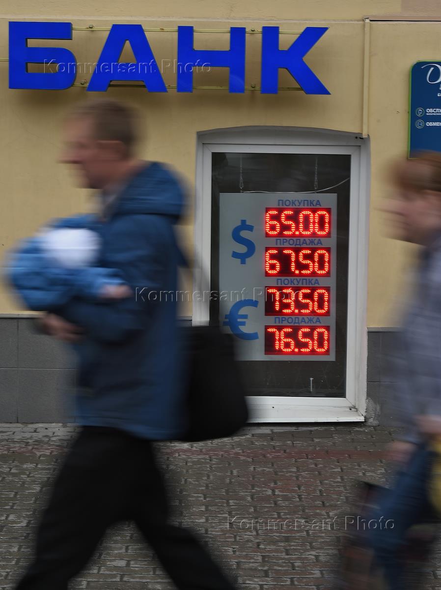 Жанровая фотография. Информационное табло пункта обмена валют с курсом доллара и евро.