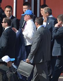 Торжества, посвященные 70-летию победы китайского народа в Войне сопротивления Японии и окончания Второй мировой войны, прошли на площади Тяньаньмэнь. Руководитель администрации президента России Сергей Иванов (в центре) и министр иностранных дел России Сергей Лавров (справа) во время военного парада.