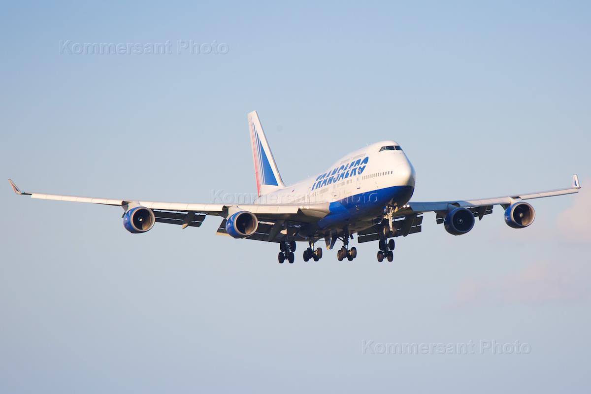 Жанровая фотография. Самолет авиакомпании "Трансаэро" Boeing 747.