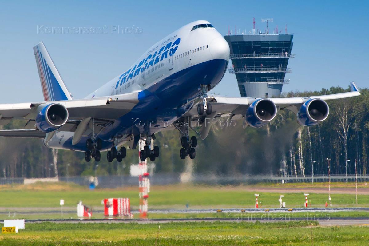 Жанровая фотография. Самолет авиакомпании "Трансаэро" Boeing 747.