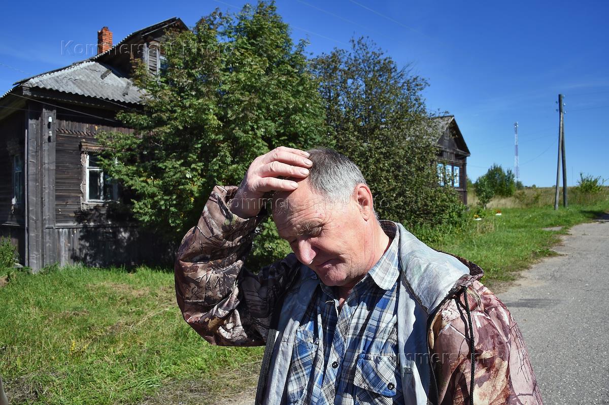 Село Понизье Антроповского района Костромской области. Местный житель Николай во дворе своего дома.