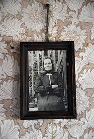 Жанровая фотография. Брошенный дом в деревни Степено Костромской области. Фотографии на стене.
