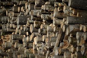 Виды деревни Артемьевское в Степановском сельском поселении Галичского района Костромской области. Поленница из чурок.