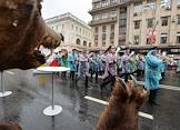 Празднование Дня Города в Москве. Праздничные мероприятия на улицах столицы. Шествие военных оркестров. Охотный ряд.