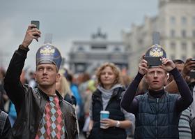 Празднование Дня Города в Москве. Иностранные туристы во время праздничных мероприятий на Тверской улице.