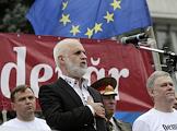 Многотысячная акция протеста, участники которой требовали отставки президента и правительства, отстранения олигархов от власти и обеспечения свободы СМИ прошла в центре Кишиневе. Один из лидеров Гражданской платформы, депутат первого парламента Молдавии Валентин Долганюк во время акции.