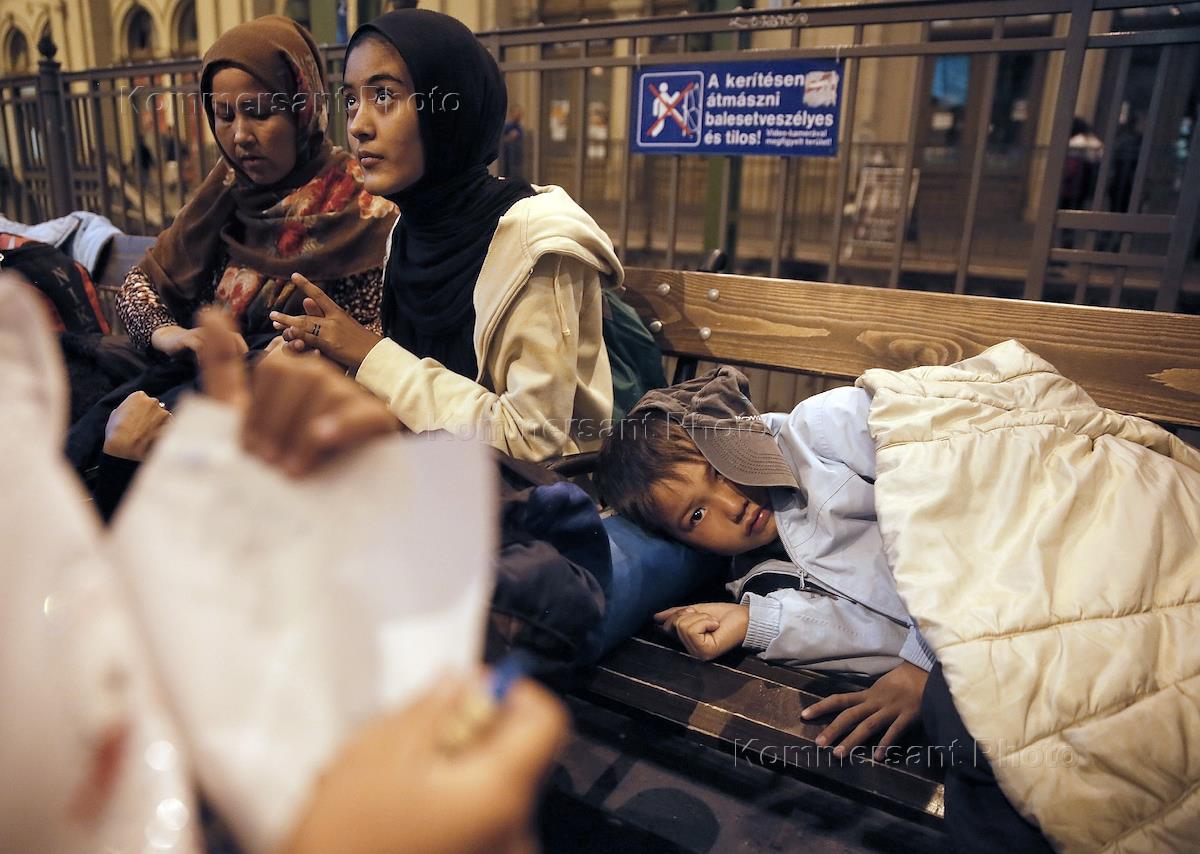 Мигранты с Ближнего Востока и Северной Африки на вокзале Келети в Будапеште.