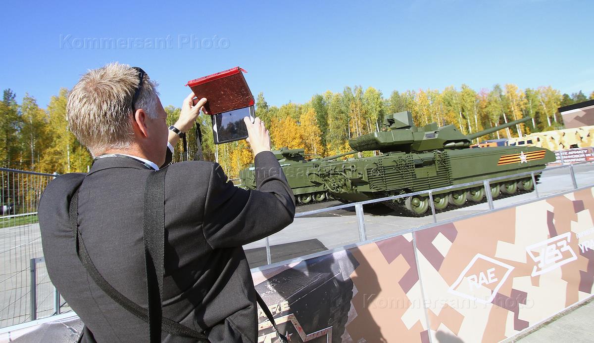 X международная выставка Russia Аrms Еxpo. Зритель снимает на планшетный компьютер новые образцы военной техники.