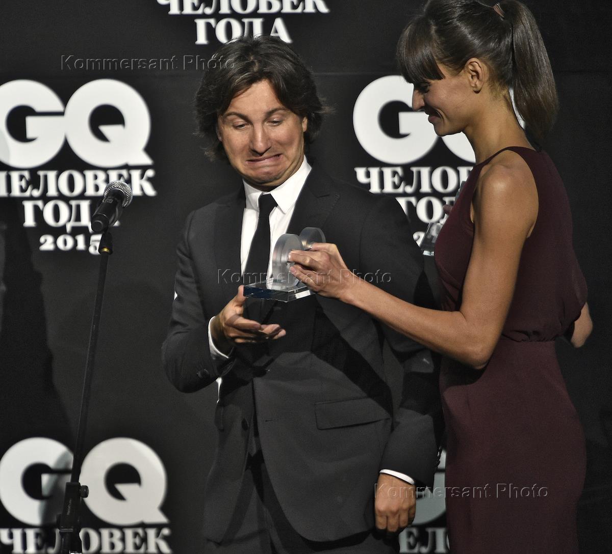 Лицо бренда Cristian Morel Ида Лоло (слева) и совладелец бренда KISA Алексей Киселев (справа) во время торжественной церемонии вручения премии "Человек года" по версии журнала GQ в концертном зале "Барвиха Luxury Village".
