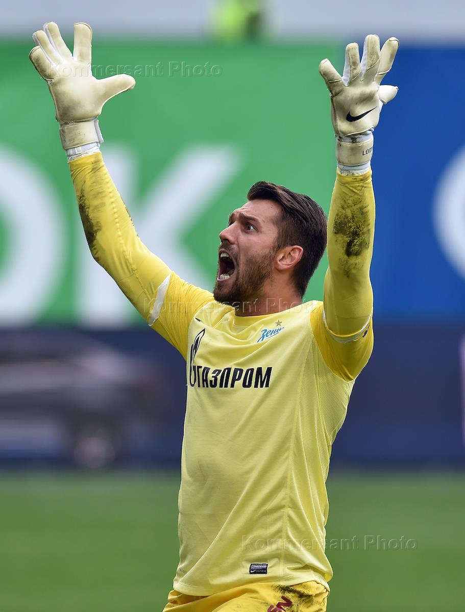 СОГАЗ. Чемпионат России по футболу 2015/2016. 8 тур. Вратарь команды "Зенит" (Санкт-Петербург) Юрий Лодыгин (слева) во время матча между командами ЦСКА (Москва) и "Зенит" (Санкт-Петербург) на стадионе "Арена Химки".
