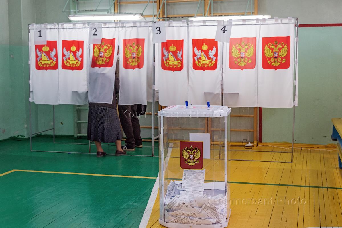 Выборы в Воронежскую городскую и областную думы. Голосование на избирательном участке.
