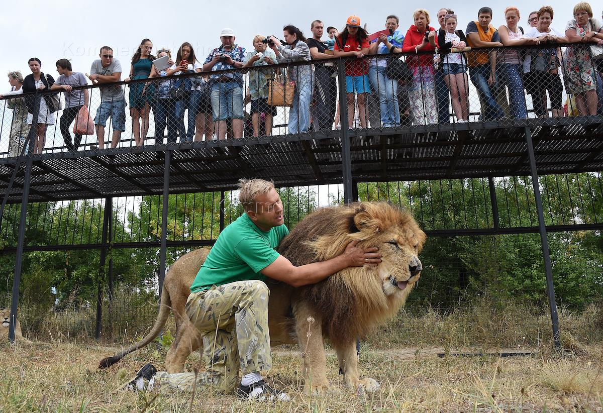 Посетители Белогорского парка "Тайган" — крупнейшего в Европе питомника львов и других видов животных, в основном крупных млекопитающих.