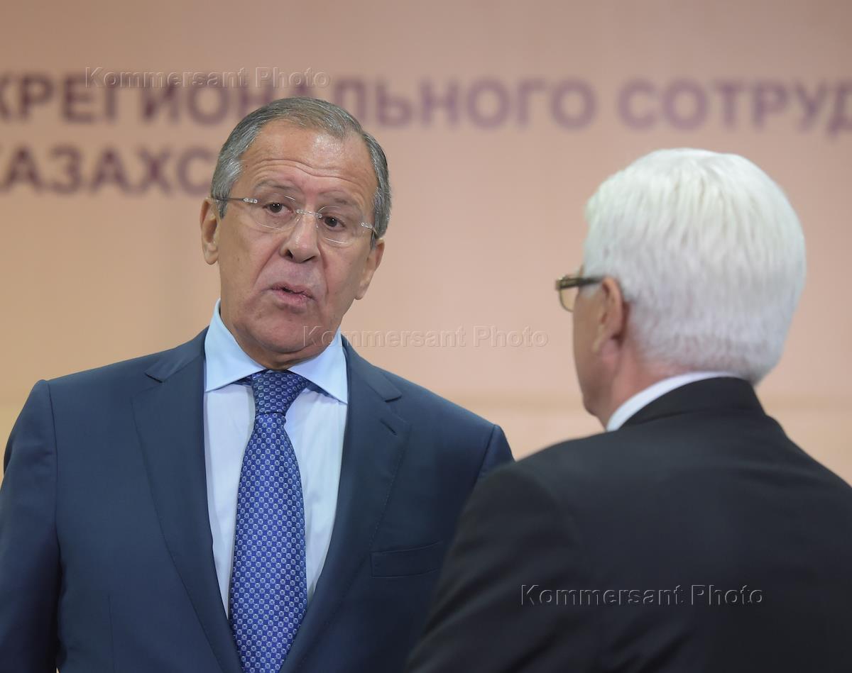 Министр иностранных дел России Сергей Лавров (слева) на XII Форуме межрегионального сотрудничества России и Казахстана. Форум прошел в конгресс-центре "Горки город".