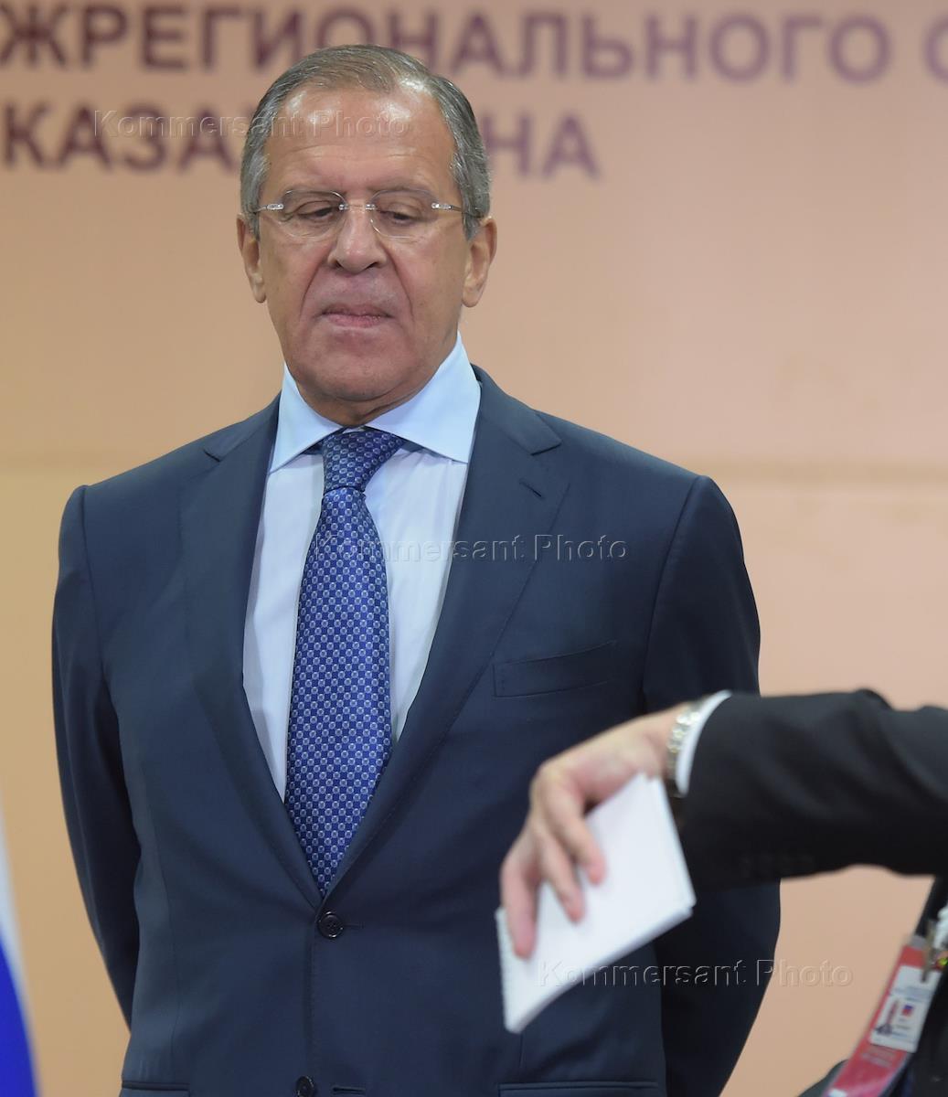 Министр иностранных дел России Сергей Лавров (слева) на XII Форуме межрегионального сотрудничества России и Казахстана. Форум прошел в конгресс-центре "Горки город".