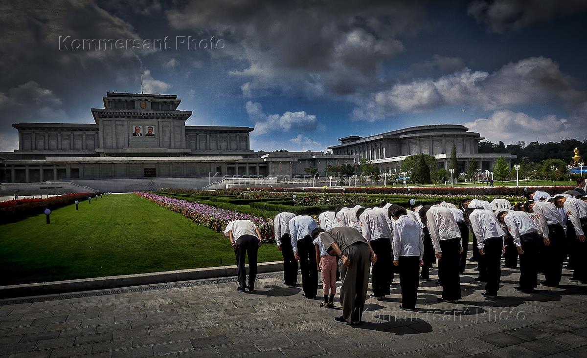 Жанровая фотография. Виды Пхеньяна. Мавзолей деда и отца вождя Ким Чон Ына. Люди во время поклона.