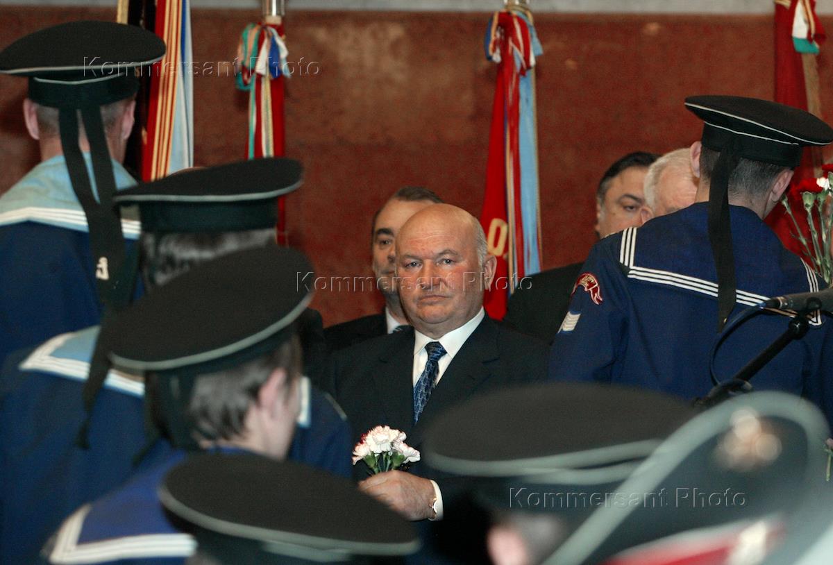 Moscow Mayor Yury Luzhkov (centre) takes part in the opening ceremony of the underground station 'Park Pobedy' ('Victory Park').