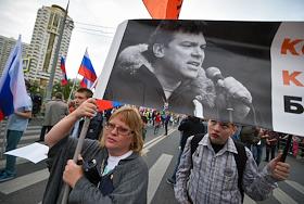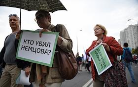 Шествие и митинг сторонников оппозиционера Алексея Навального прошел в Марьино. Участники с портретом Бориса Немцова.