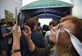 Шествие и митинг сторонников оппозиционера Алексея Навального прошел в Марьино. Участница акции снимает на планшет.