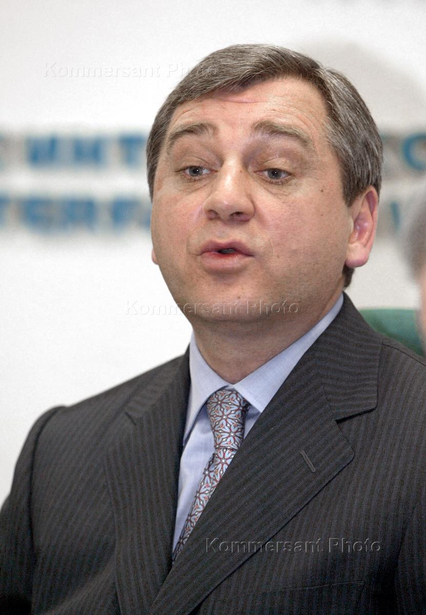Russian Deputy Prime Minister Boris Aleshin is interviewed at a news conference held in the Interfax news agency.