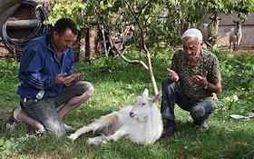 Село Изобильное. Мусульманский праздник жертвоприношения Курбан-Байрам. Козы для древнего обряда жертвоприношения.
