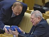 Заместитель председателя комитета Государственной думы (ГД) России по труду, социальной политике и делам ветеранов Николай Коломейцев (слева) и председатель комитета ГД по конституционному законодательству и государственному строительству Владимир Плигин (справа) во время заседания Госдумы.