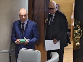 Министр финансов России Антон Силуанов (слева), его заместитель Алексей Лавров (справа) во время заседания Государственной думы России.