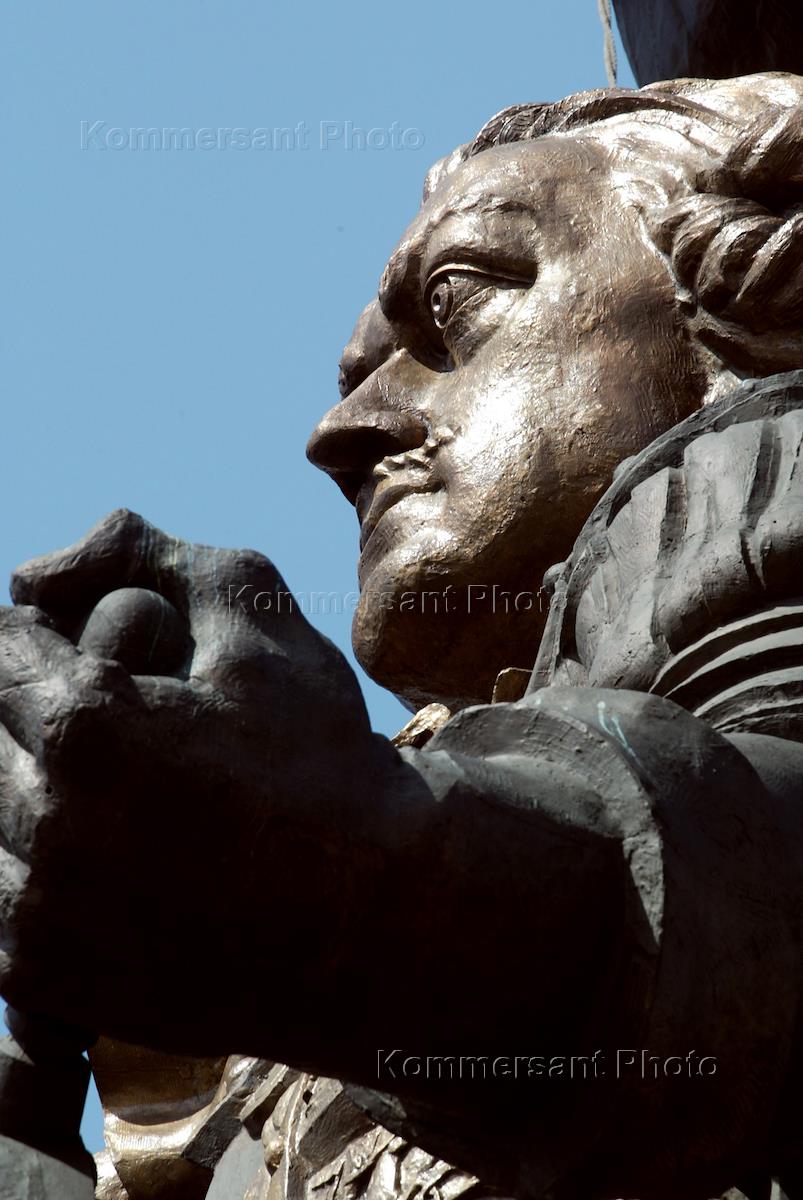 Виды Москвы. Фрагмент памятника Петру Первому (Великому) скульптора Зураба Церетели на стрелке Болотного острова.