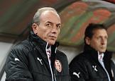 Лига Европы по футболу. Матч между командами "Локомотив" (Россия, Москва) и "Скендербеу" (Албания, Корча) на стадионе "Локомотив". Главный тренер команды "Скендербеу" Мире Йоса во время матча.