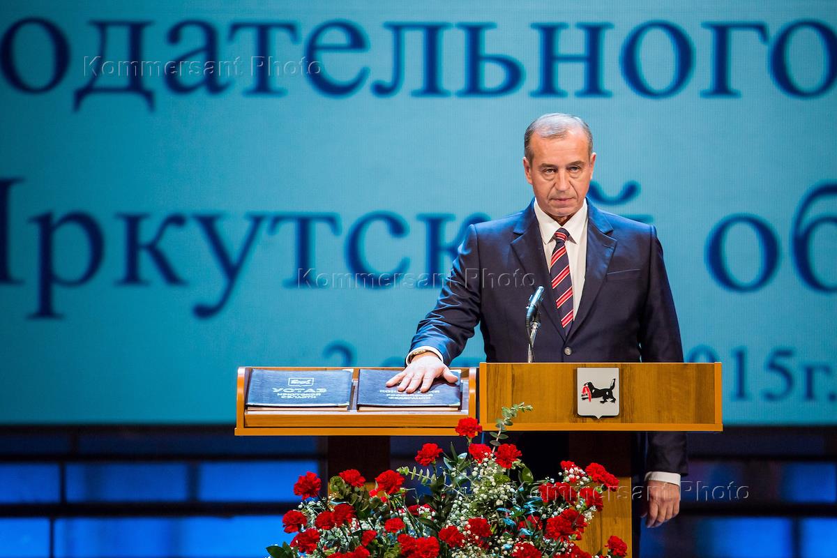 Губернатор Иркутской области Сергей Левченко во время своей инаугурации на должность губернатора в музыкальном театре имени Загурского.
