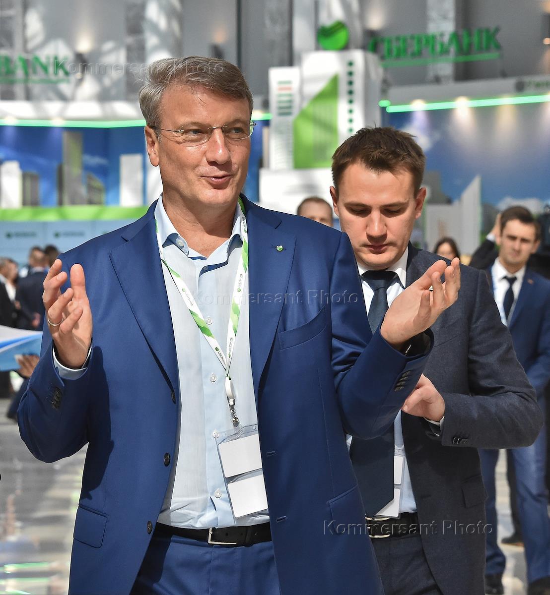 International investments forum 'Sochi-2015' held in the main mediacentre. The first day. President, chairman of board of OJSC 'Sberbank' German Gref is during the Sberbank business-breakfast about 'Diversification. There is no alternative with all variety of choices'.