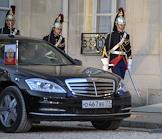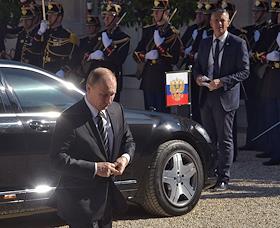 Визит президента России Владимира Путина во Францию. Переговоры лидеров стран "нормандской четверки". Автомобиль президента России Владимира Путина во время официальной церемонии встречи.