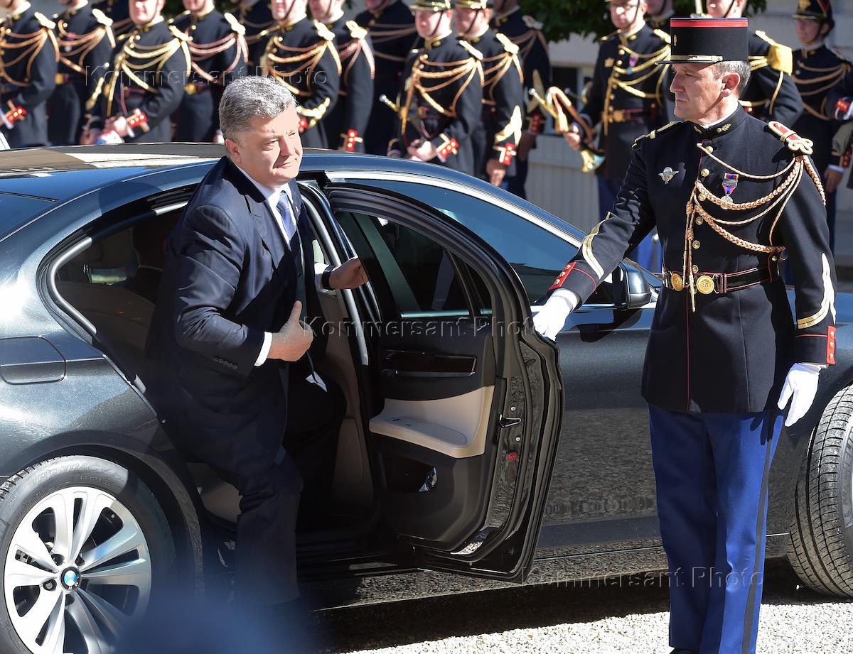 Визит президента России Владимира Путина во Францию. Переговоры лидеров стран "нормандской четверки". Президент Украины Петр Порошенко (слева) во время официальной церемонии встречи.