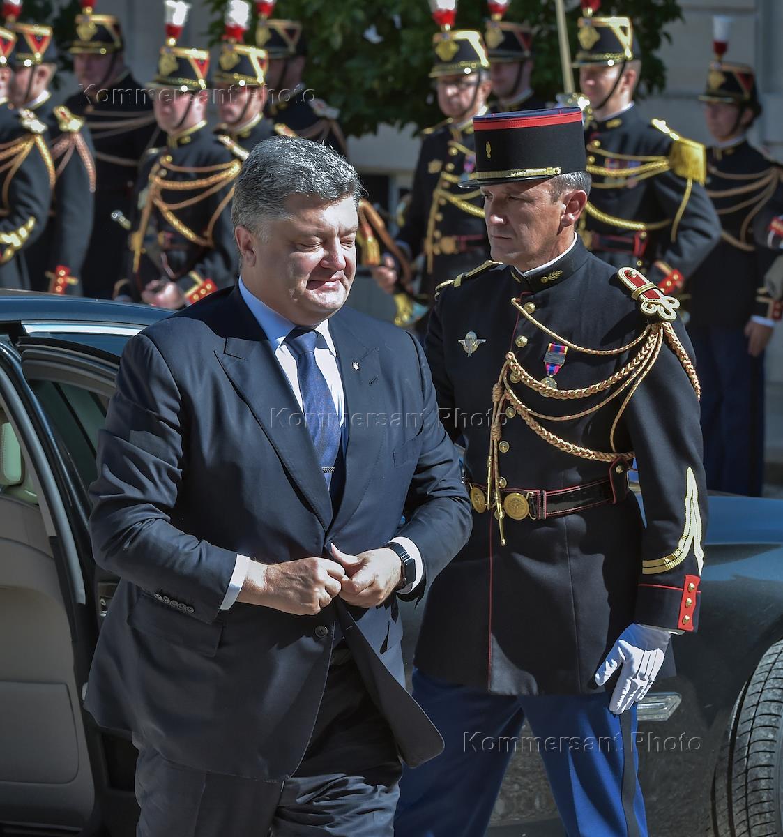 Визит президента России Владимира Путина во Францию. Переговоры лидеров стран "нормандской четверки". Президент Украины Петр Порошенко во время официальной церемонии встречи.