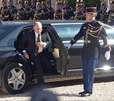 Визит президента России Владимира Путина во Францию. Переговоры лидеров стран "нормандской четверки". Автомобиль президента России Владимира Путина во время официальной церемонии встречи.