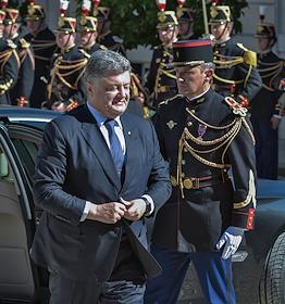 Визит президента России Владимира Путина во Францию. Переговоры лидеров стран "нормандской четверки". Президент Украины Петр Порошенко (слева) во время официальной церемонии встречи.
